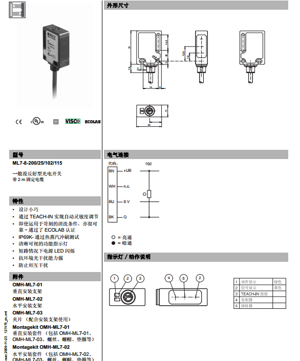 ML7-8-200/25/102/115,漫反射型传感器
