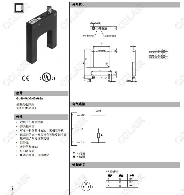 GL50-IR/32/40a/98a,GL50-RT/32/40a/98a,槽型光栅传感器