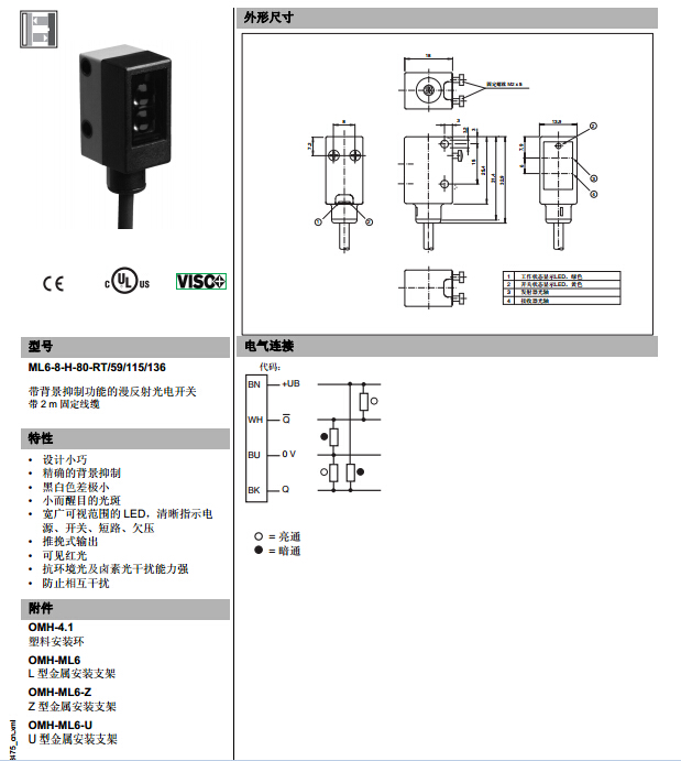 ML6-8-H-80-RT/59/115/136,漫反射型传感器