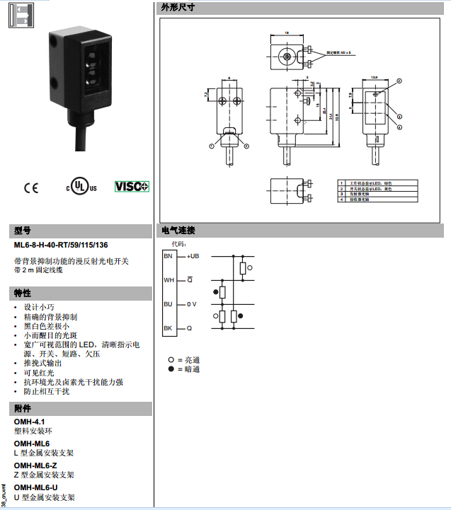 ML6-8-H-40-RT/59/115/136,漫反射型传感器