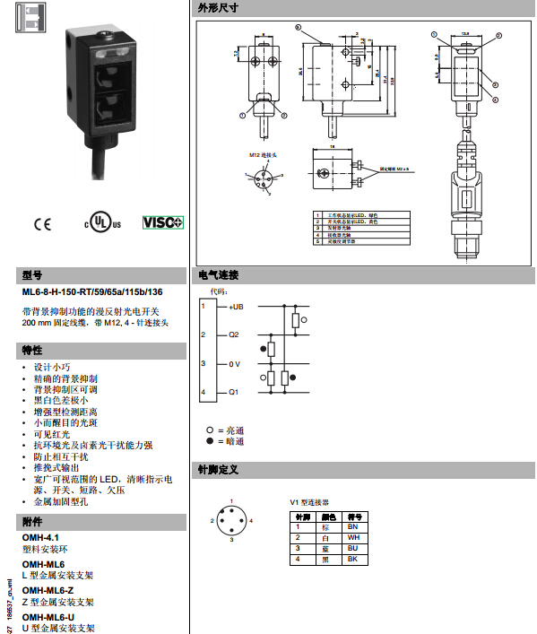 ML6-8-H-150-RT/59/65a/115b/136,漫反射型传感器