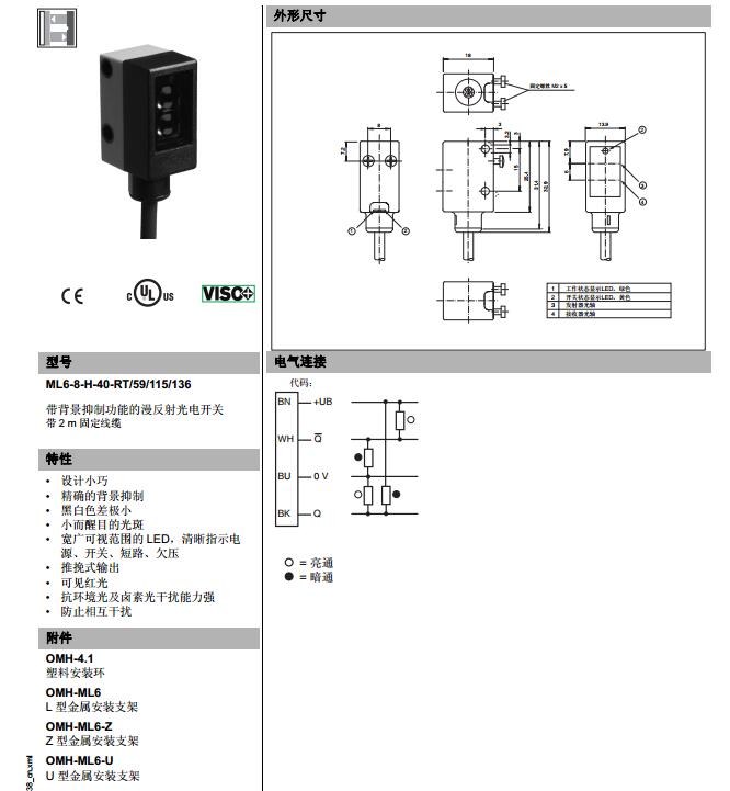 ML6-8-H-40-RT/59/115/136,漫反射型传感器