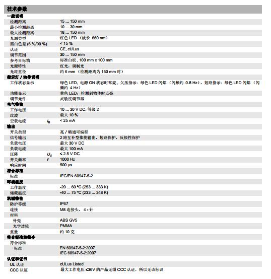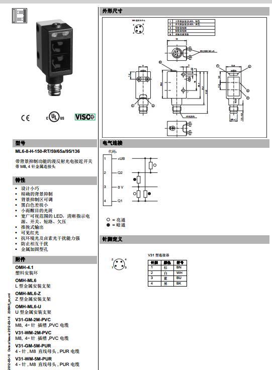 ML6-8-H-150-RT/59/65a/95/136,漫反射型传感器