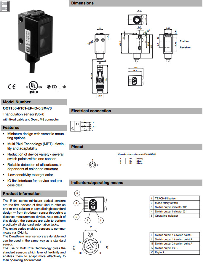 OQT150-R101-EP-IO-0,3M-V3,开关传感器