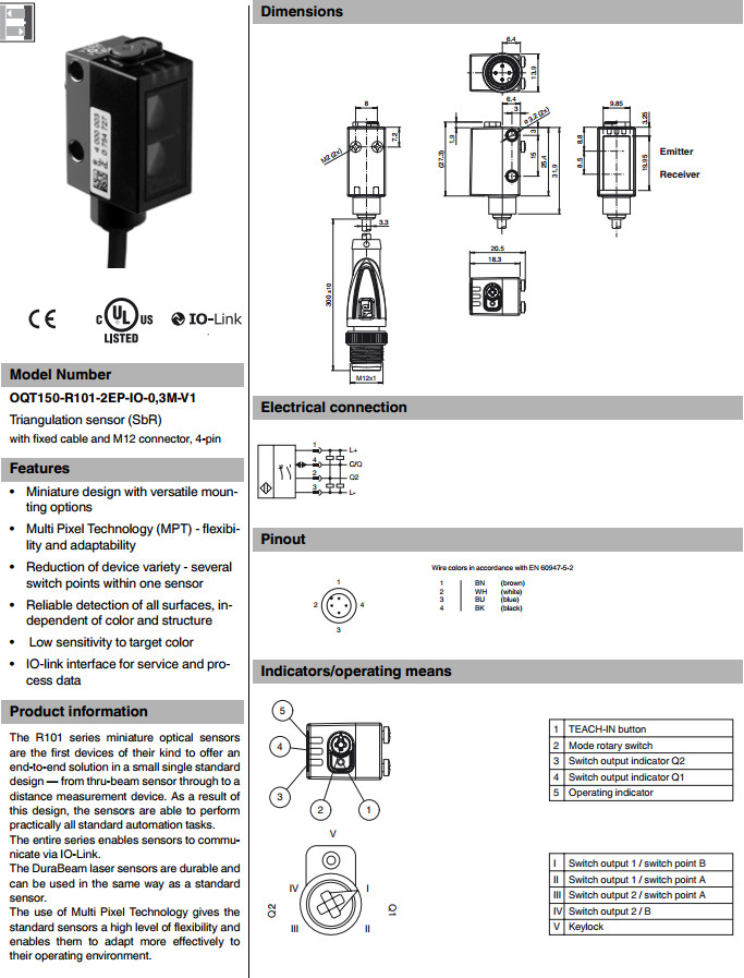 OQT150-R101-2EP-IO-0,3M-V1,开关传感器