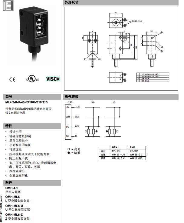 ML4.2-8-H-40-RT/40b/110/115,漫反射型传感器