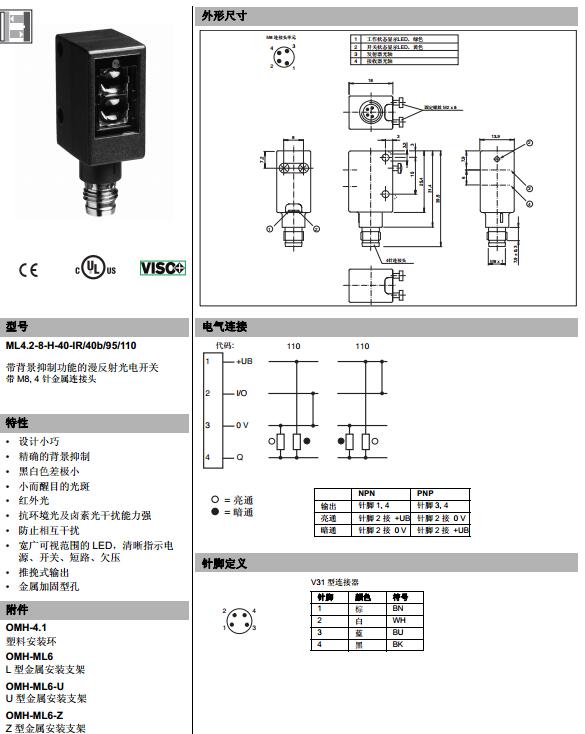 ML4.2-8-H-40-IR/40b/95/110,漫反射型传感器