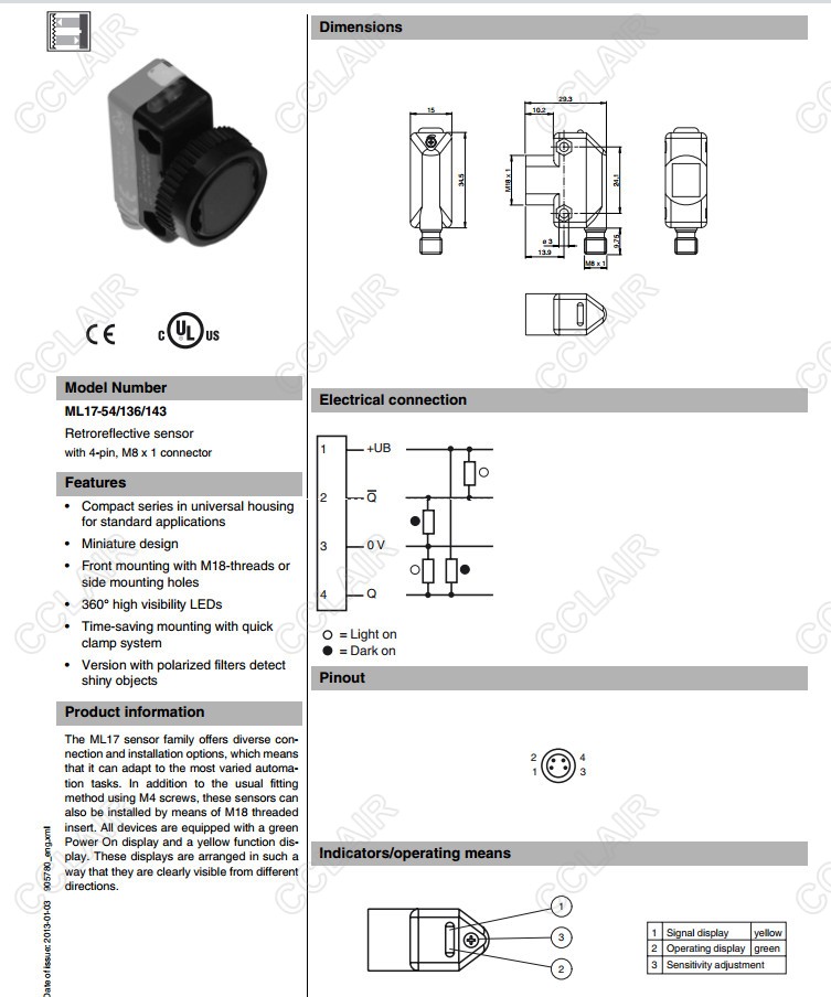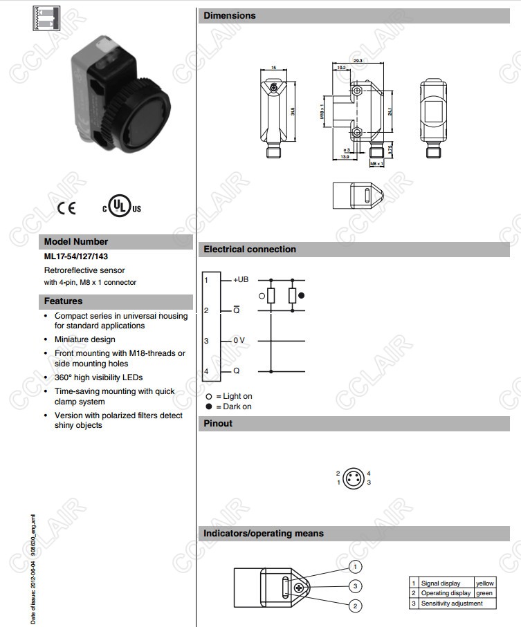ML17-54/120/143,ML17-54/127/143,ML17-54/136/143,反射板型传感器