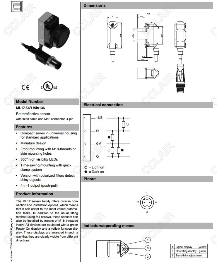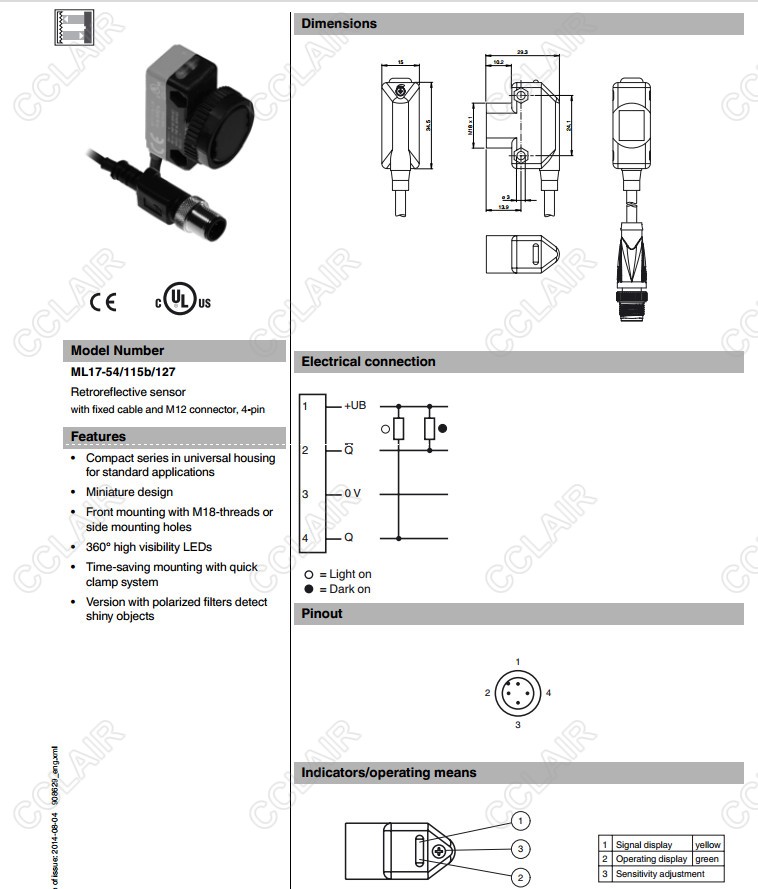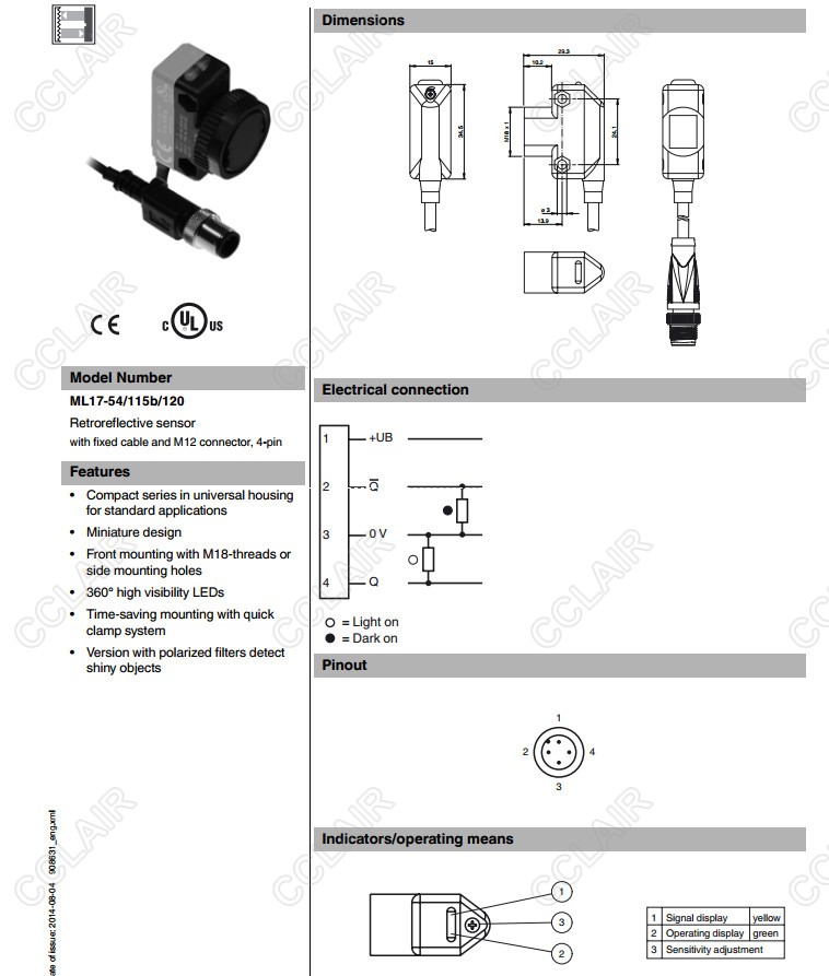 ML17-54/115b/120,ML17-54/115b/127,ML17-54/115b/136,反射板型传感器