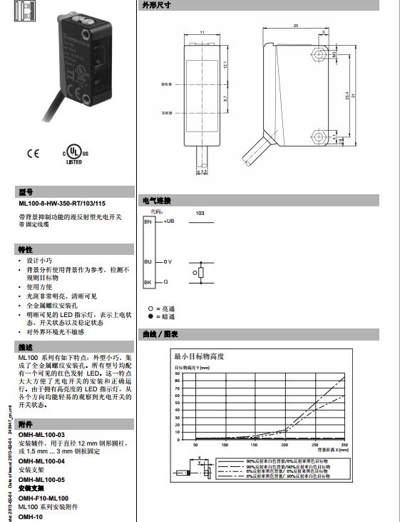 ML100-8-HW-350-RT/103/115,漫反射型传感器