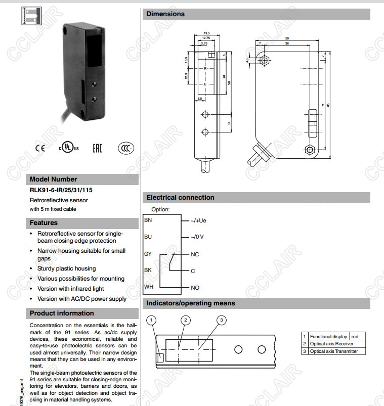 RLK91-6-IR/25/31/115,反射板型传感器