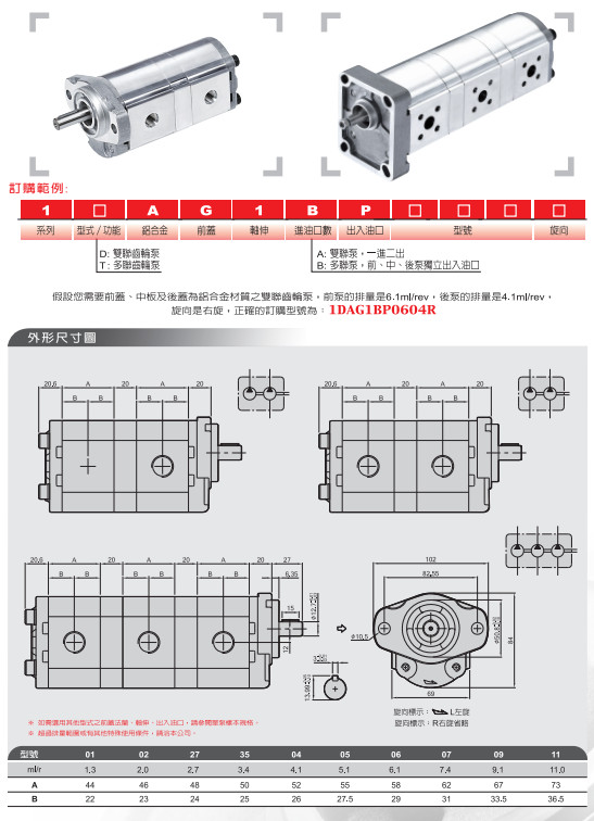1DAG1AP,1DAG1BP,1TAG1AP,1TAG1BP,1DAG1BP0604R,HONOR铝合金多聊齿轮泵