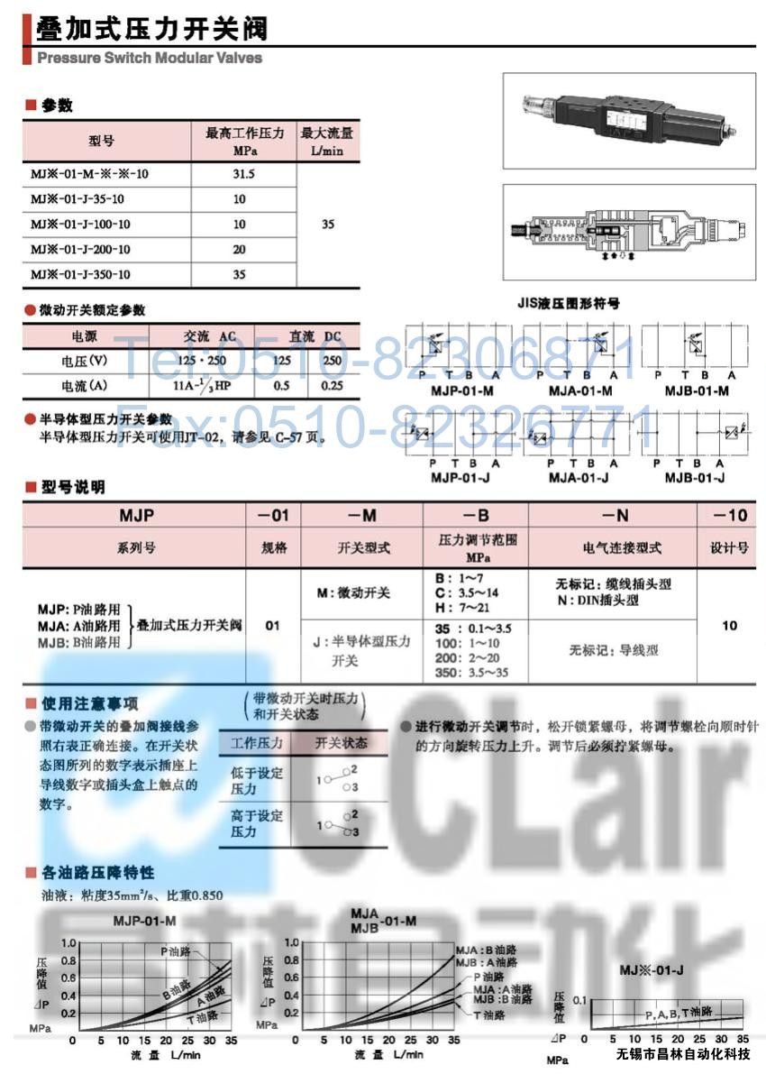 MJP-01-M-B-N-10,MJP-01-M-C-N-10,叠加式压力开关阀,榆次油研叠加式压力开关阀,YUKEN叠加式压力开关阀