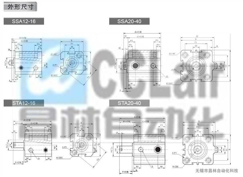 T-CDA12*5,T-CDA12*10,T-CDA12*15,T-CDA12*20,T-CDA12*25,低速气缸--薄型气缸C系列