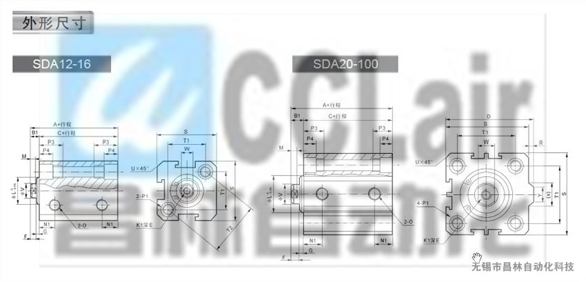 T-CDA12*5,T-CDA12*10,T-CDA12*15,T-CDA12*20,T-CDA12*25,低速气缸--薄型气缸C系列