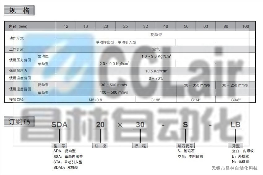 SGDA12*10,SGDA12*20,SGDA12*30,SGDA12*40,SGDA12*50,SGDA12*75,带导向装置的薄型气缸--标准气缸