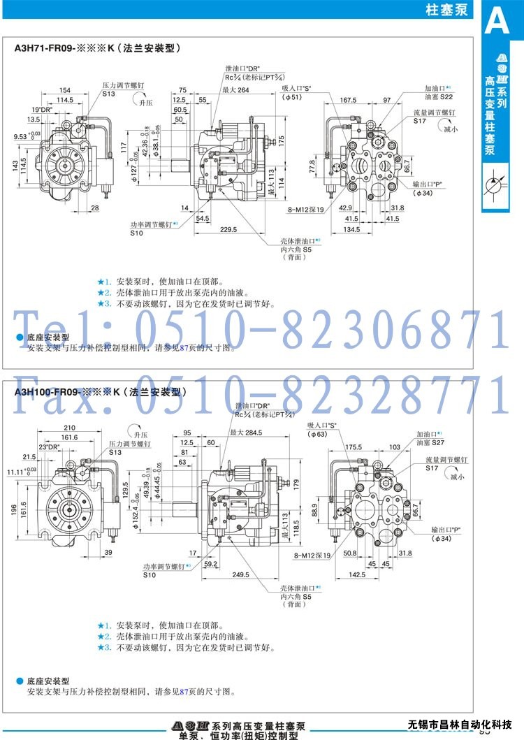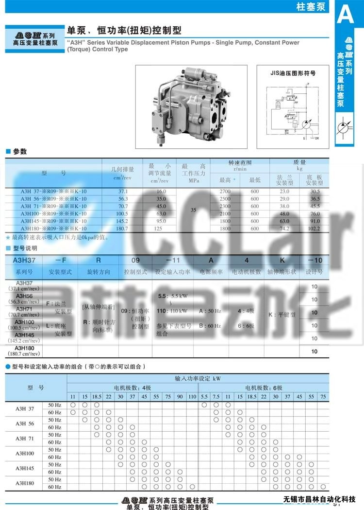 A3H56-LR09-18.5B6K-10,A3H56-FR09-22B6K-10,A3H56-LR09-22B6K-10,高压变量柱塞泵