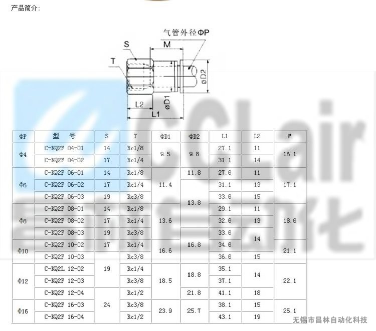 C-KQ2F16-03 ,C-KQ2F16-04,内螺直接头,