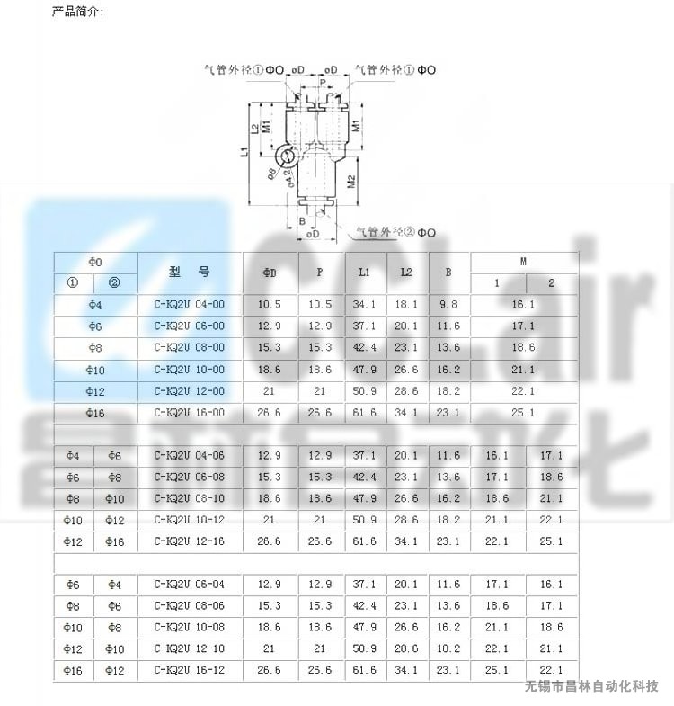 C-KQ2U12-00,C-KQ2U12-16,C-KQ2U12-10, U型接管