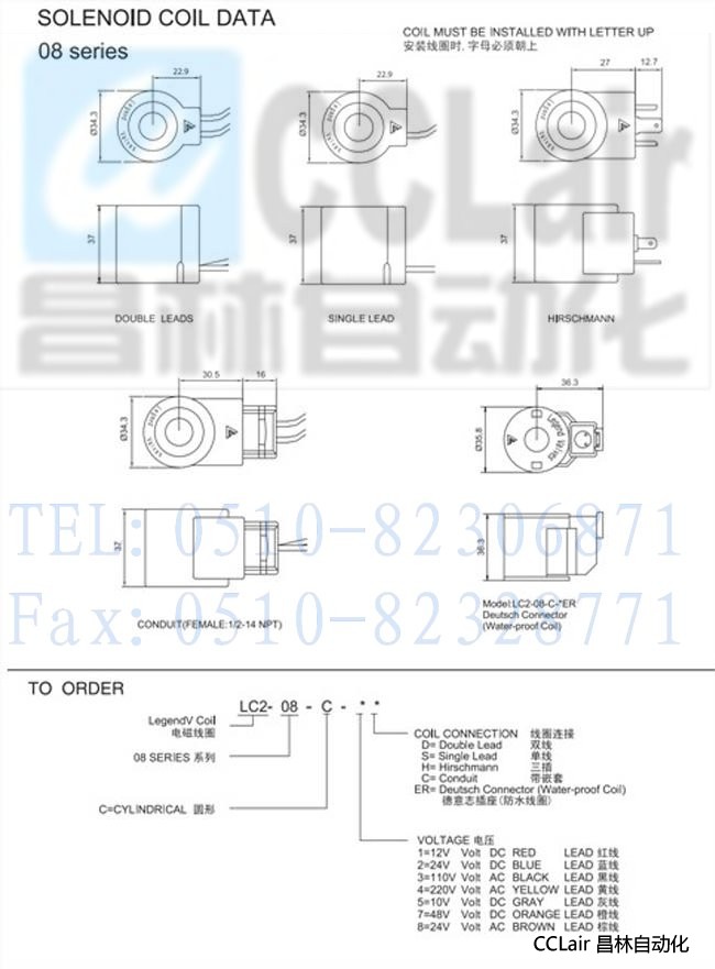 LC2-08-C-3D,LC2-08-C-3S,LC2-08-C-3H,LC2-08-C-3C,电磁线圈,