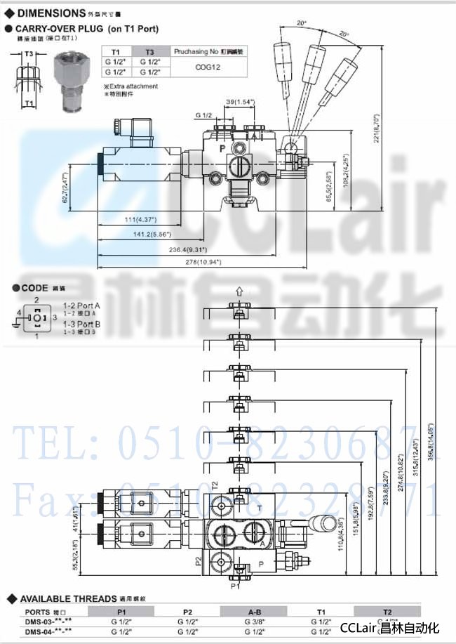 Z50/16O12VDCG,Z50/20O12VDCG,Z50/25O12VDCG,Z50/31.5O12VDCG,Z50电磁控整体式多路阀