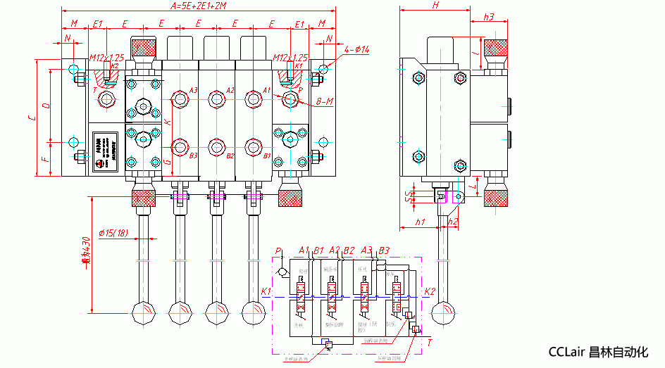 本阀具有公共进油口和回油口,其油路形式为并联油路和串联油路二种。并联油,即各换向阀的进油路和回油路并联连接。串联油路,即第一片阀的回油口接第二片阀的进油口,第三片阀的进油口接第二片阀的回油口,依次类推。阀的片数组合可根据用户的需要,一般可组合成2-12片多路换向阀。滑阀机能:A、并联油路:有O、H、Y、N、J、P等机能;B、串联油路:只有M机能。复位方式有:弹簧复位和钢球复位二种。