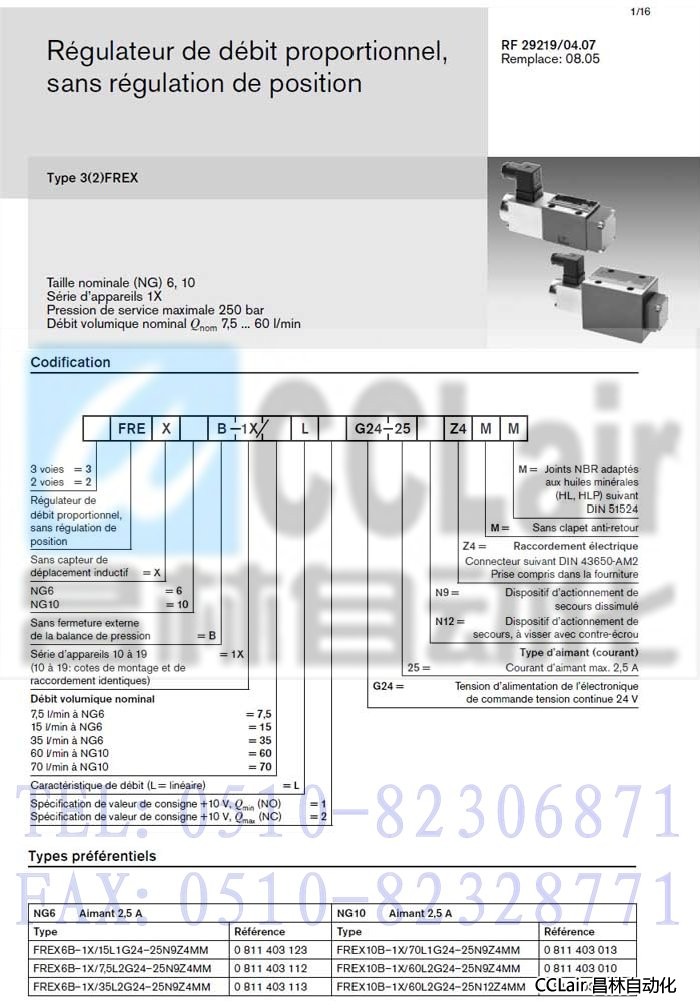 2FREX6B-1X/35L2G24-25N9Z4MM,2FREX10B-1X/70L1G24-25N9Z4MM, 比例流量控制阀,力士乐REXROTH,德国力士乐
