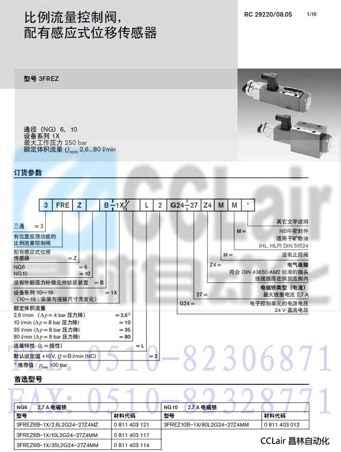 3FREZ6B-1X/35L2G24-27Z4MM,3FREZ6B-1X/80L2G24-27Z4MM,比例流量控制阀,力士乐REXROTH,德国力士乐
