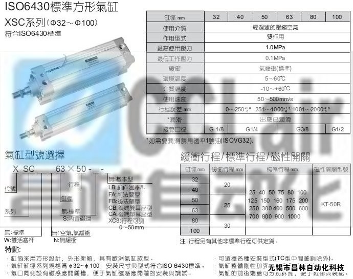 XSCN50×75,XSCN50×80,XSCN50×100,XSCN50×125,XSCN50×150,XSCN50×160,标准方型气缸