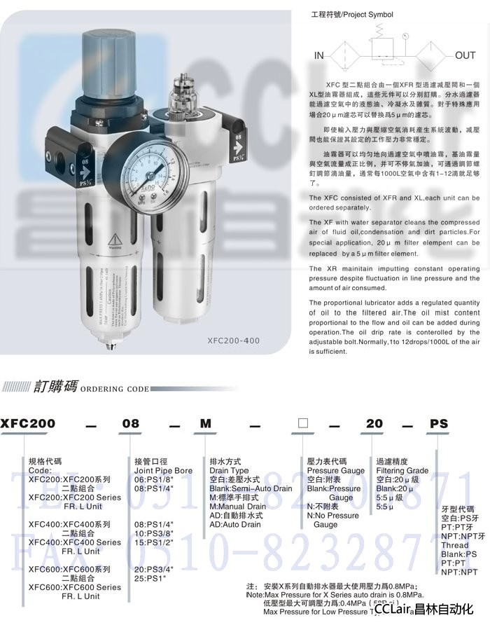 GFC200-06,GFC200-08,GFC300-08,GFC300-10,GFC300-15,GFC400-10,气源处理件--二联件