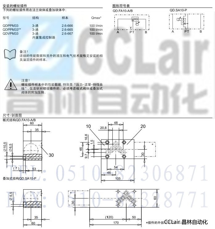 QDPFA10-A/B,QDPFA10-P,板式和叠加式比例3-通流量控制阀