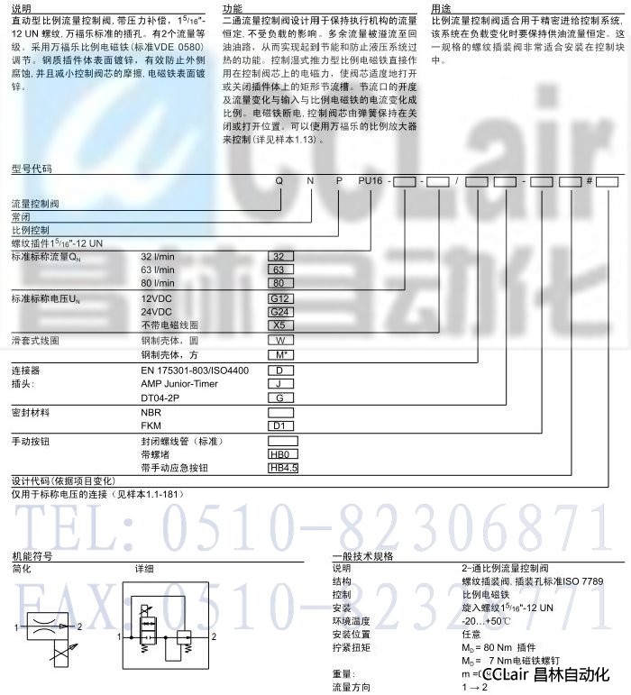 QNPPU16,插装式比例2-通流量控制阀