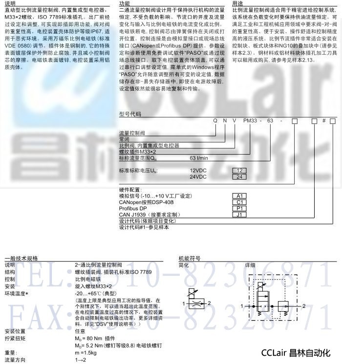 QNVPM33,插装式比例 2-通流量控制阀(内置集成型电控器)