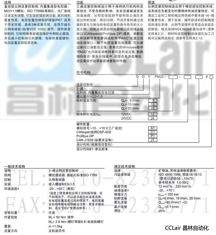 QDVPM22,插装式比例 3-通流量控制阀(内置集成型电控器)