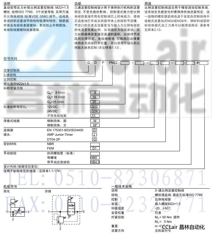 QDPPM22,插装式比例3-通流量控制阀(滑套式线圈)