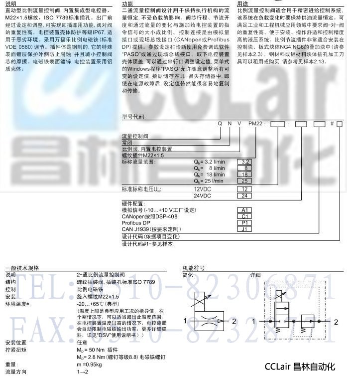 QNVPM22,插装式比例 2-通流量控制阀(内置集成型电控器)