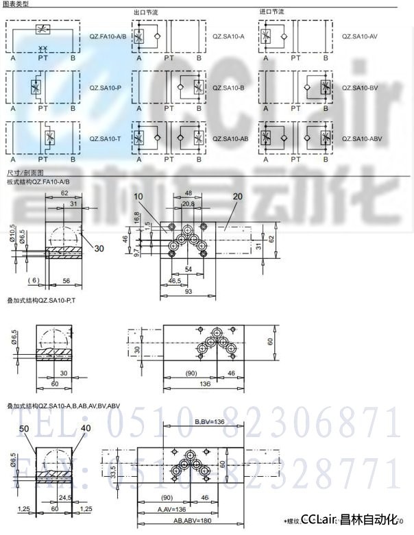 QZ.FA10-A/B,QZ.SA10-P,QZ.SA10-T,2-通板式和叠加式流量控制阀