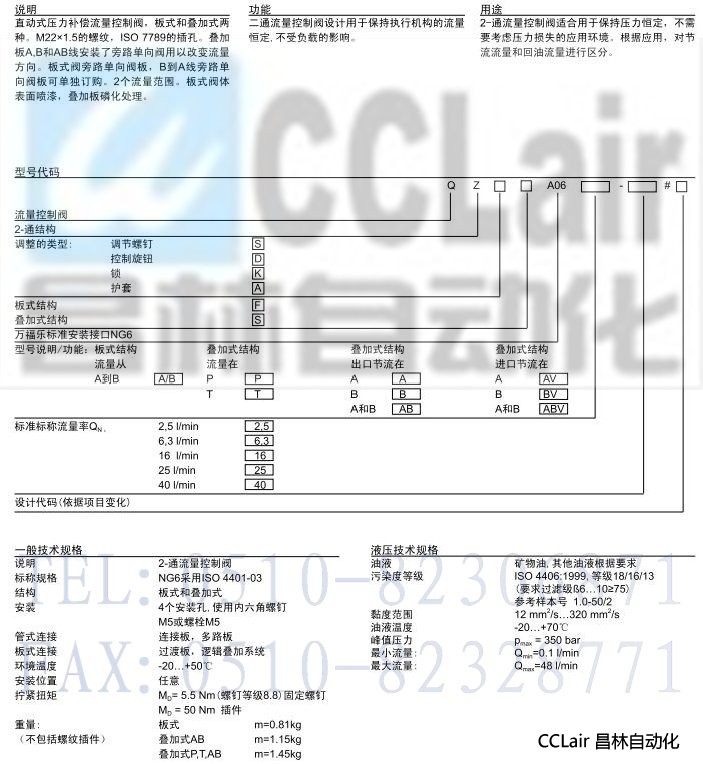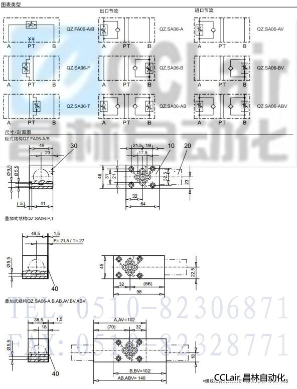 QZ.SA06-A/B,QZ.SA06-P,QZ.SA06-T,2-通板式和叠加式流量控制阀