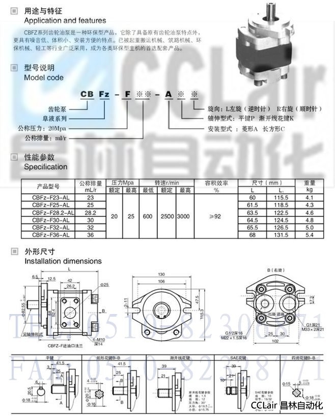 CBFz-F23-AL,CBFz-F25-AL,CBFz-F28.2-AL,齿轮泵