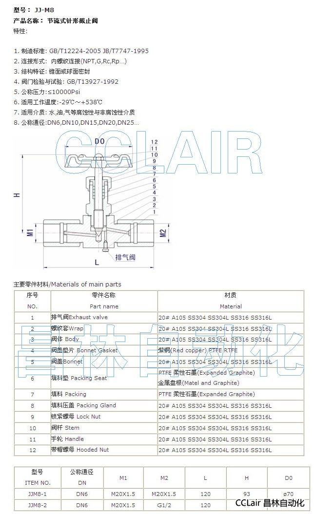 JJM8-1,JJM8-2, 节流式针形截止阀