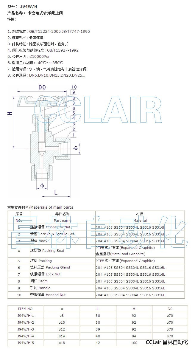 J94W-1,J94W-2,J94W-3,J94W-4,J94W-5, 卡套角式针形截止阀
