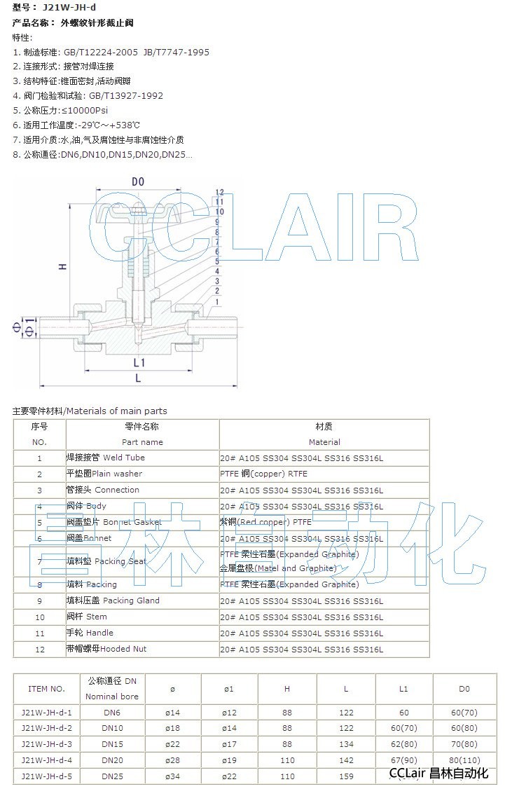J21W-JH-d-1,J21W-JH-d-2,J21W-JH-d-3,外螺纹针形截止阀