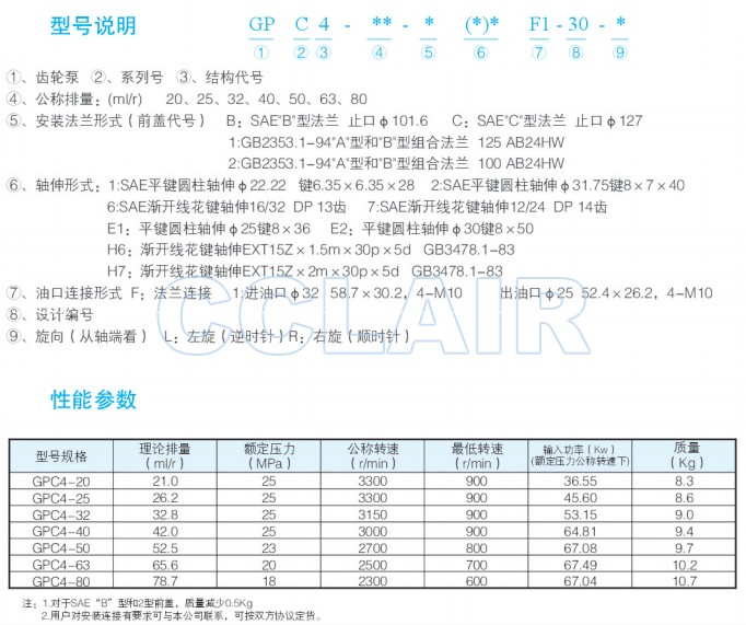 GPC4-20,GPC4-25,GPC4-32,GPC4-40,GPC4-50,GPC4-63,GPC4-80,单联齿轮泵