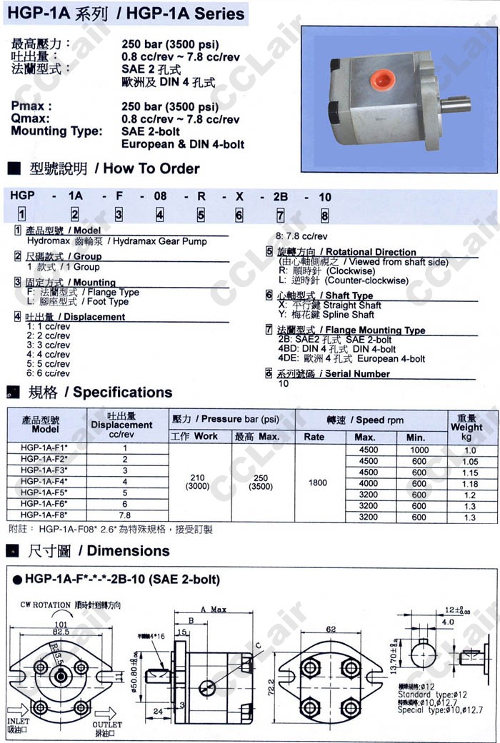 HGP-1A-F1R,HGP-1A-L2R,HGP-1A-F3L,HGP-1A-F4L,HGP-1A-F5R,HGP-1A-F8R-X-2B-10,HGP-1A-L6R,齿轮泵