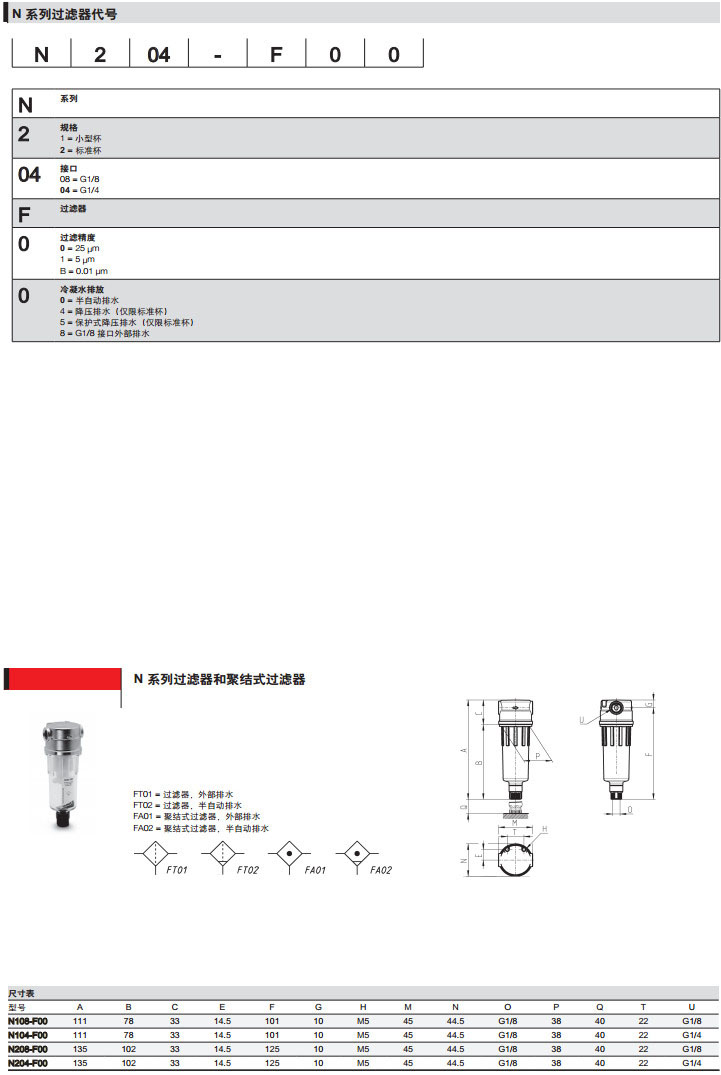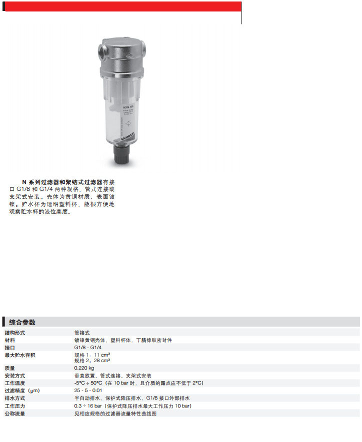 N108-F00,N104-F04,N208-F05,N204-F08,N108-F10,N208-F14,camozzi过滤器和聚结式过滤器