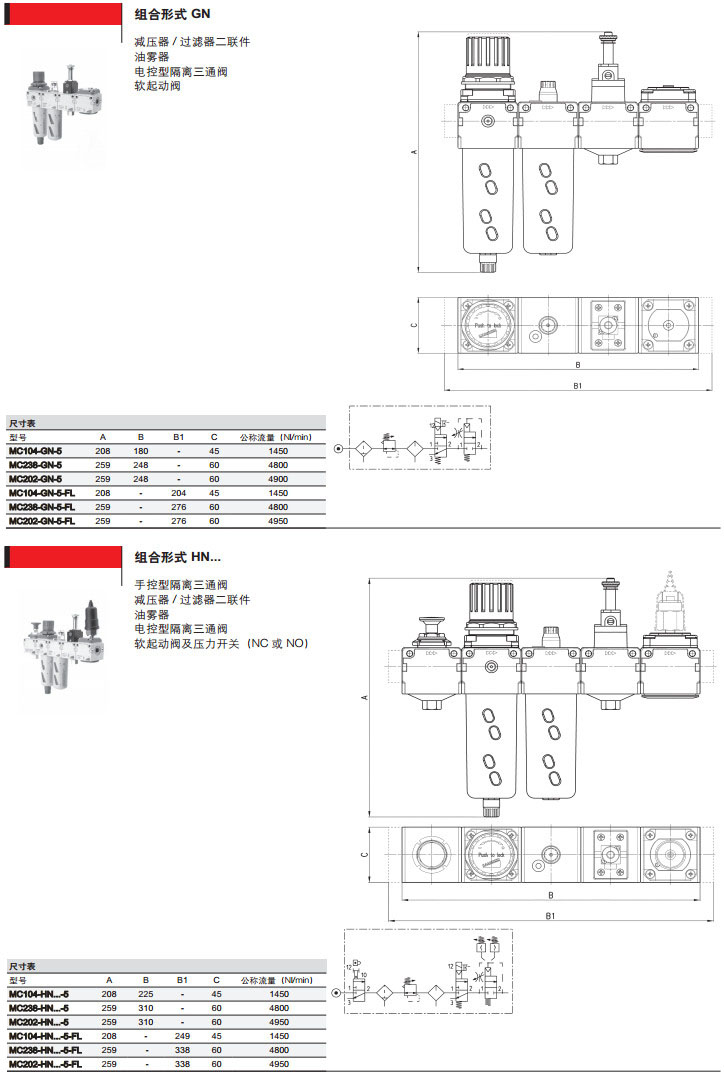 MC104-C-5,MC238-E-5,MC202-HNA-5,MC104-N-5,camozzi气源处理组合件