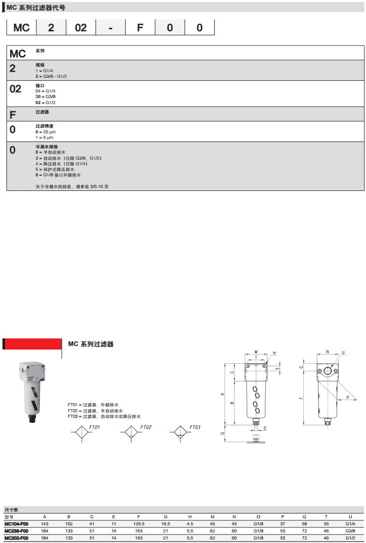 MC104-F00,MC138-F03,MC102-F05,MC204-F04,MC238-F15,MC202-F08,camozzi过滤器