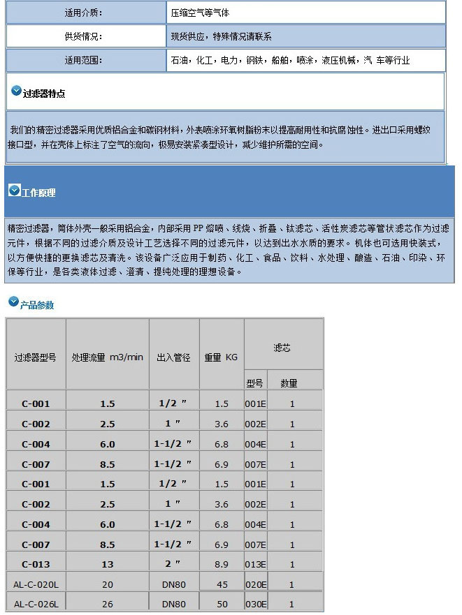 C-001,C-002,C-004,C-007,C-013,AL-C-020L,AL-C-026L,精密过滤器