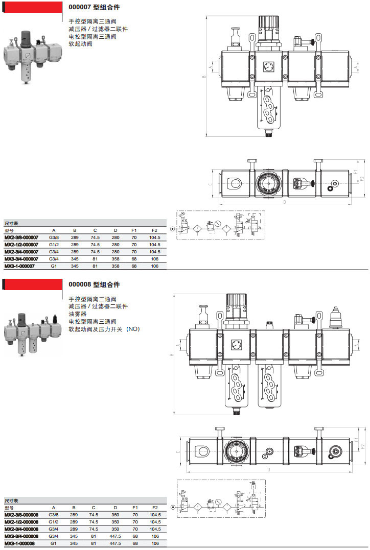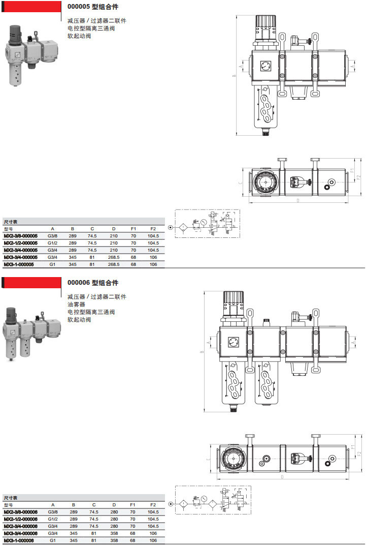 MX2-3/8-000001,MX3-1/2-000003,MX2-3/4-000010,MX3-1-000005,camozzi气源处理装置组合件