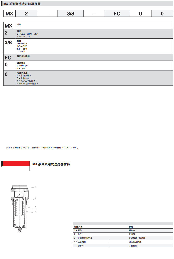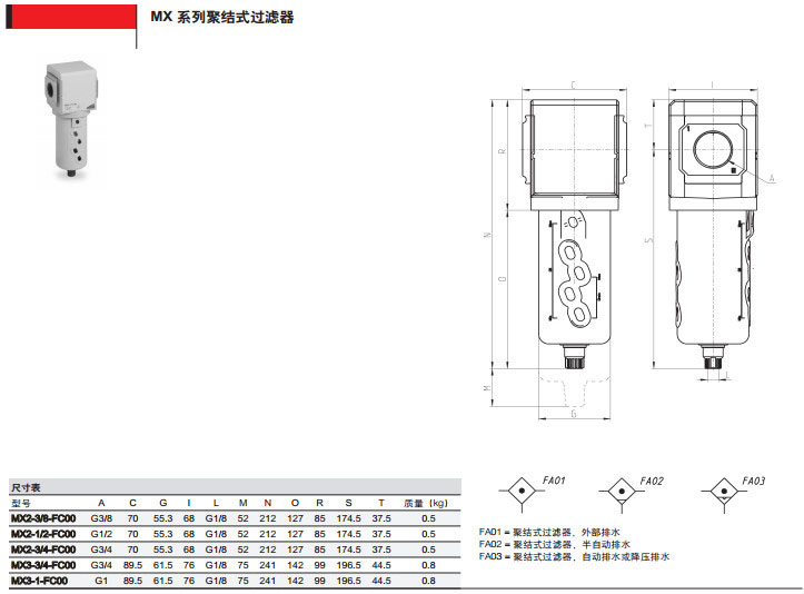 MX2-3/8-FC00,MX2-1/2-FC03,MX3-1/2-FC05,MX3-3/8camozzi聚结式过滤器